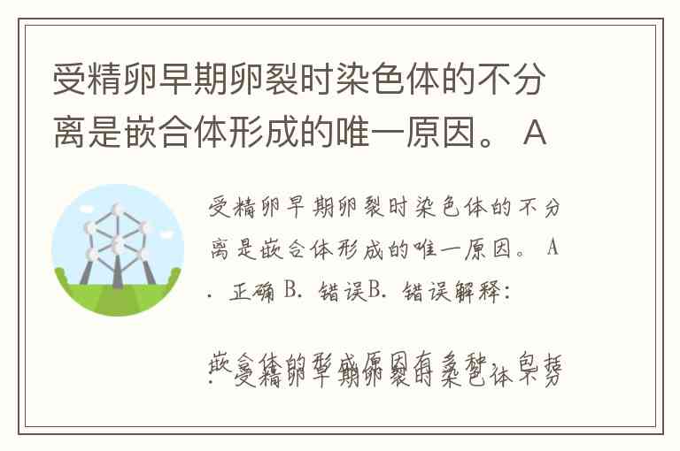 受精卵早期卵裂时染色体的不分离是嵌合体形成的唯一原因。 A. 正确 B. 错误
