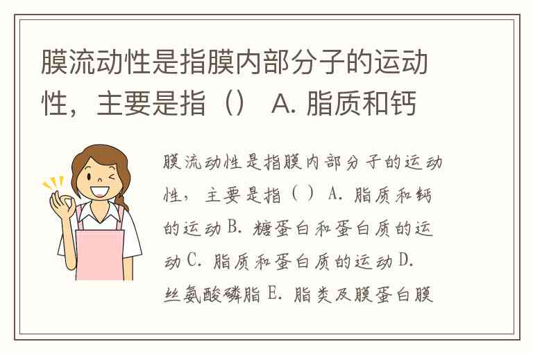 膜流动性是指膜内部分子的运动性,主要是指() A. 脂质和钙的运动 B. 糖蛋白和蛋白质的运动 C. 脂质和蛋白质的运动 D. 丝氨酸磷脂 E. 脂类及膜蛋白