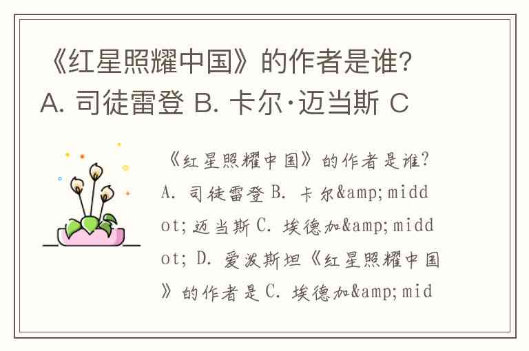 《红星照耀中国》的作者是谁? A. 司徒雷登 B. 卡尔·迈当斯 C. 埃德加· D. 爱泼斯坦
