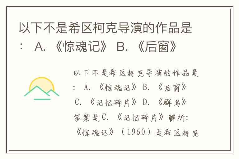 以下不是希区柯克导演的作品是: A. 《惊魂记》 B. 《后窗》 C. 《记忆碎片》 D. 《群鸟》