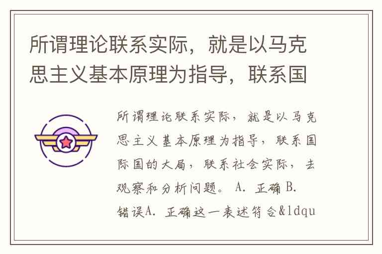 所谓理论联系实际,就是以马克思主义基本原理为指导,联系国际国的大局,联系社会实际,去观察和分析问题。 A. 正确 B. 错误