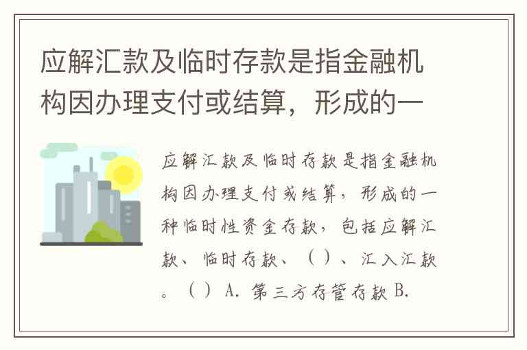 题目中描述的“应解汇款及临时存款”是银行会计中的一个特定科目(通常为“应解汇款及临时存款”科目,代码通常为2011)。