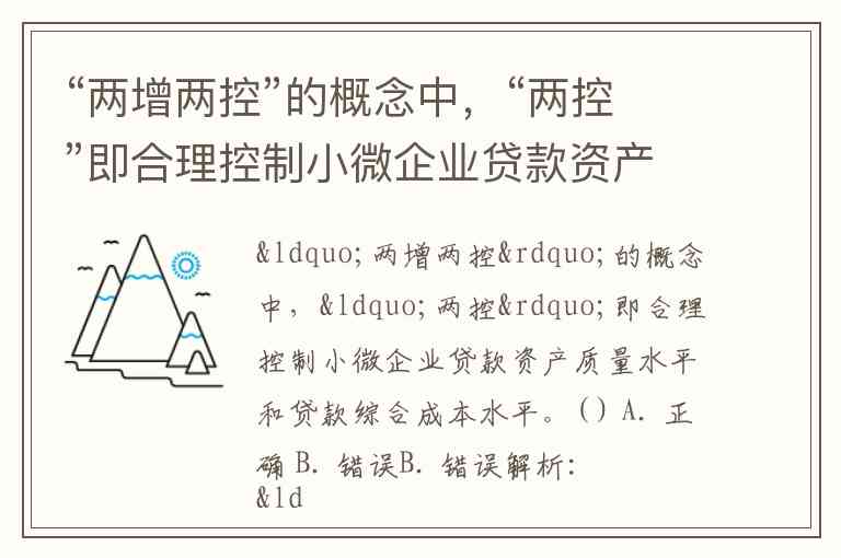 但本题之所以判断为 错误,是因为在常见考题中,如果题干只写“合理控制小微企业贷款资产质量水平和贷款综合成本水平”作为“两控”的定义,可能会被认为是不完整或不严谨的表述(原政策中“两控”有明确顺序与措辞)。