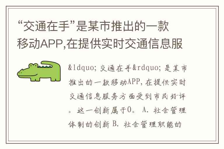 题目说的是“交通在手”是一款移动APP,主要功能是提供实时交通信息服务,这是该市在管理社会交通问题上的一个新方式,属于通过科技手段(智能手机应用)让市民获取信息,提高交通管理的效率和便捷性。
