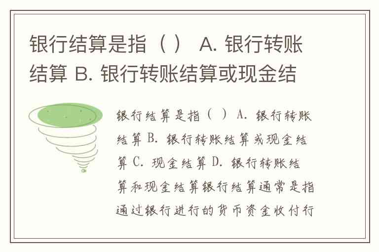 银行结算是指( ) A. 银行转账结算 B. 银行转账结算或现金结算 C. 现金结算 D. 银行转账结算和现金结算