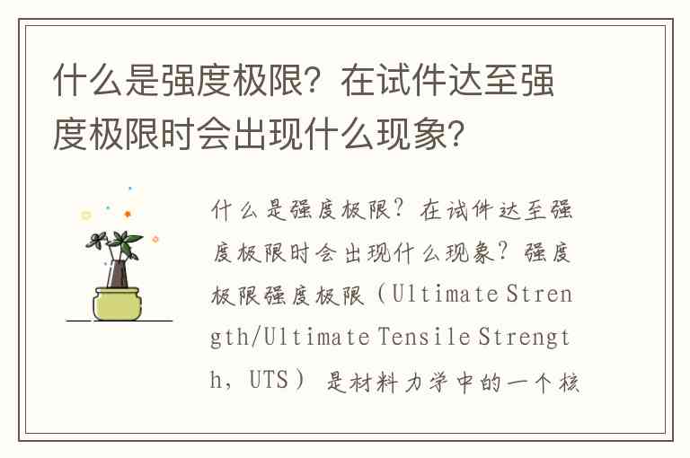 强度极限(Ultimate Strength/Ultimate Tensile Strength,UTS) 是材料力学中的一个核心概念,它特指材料在单向静拉伸试验中,所能承受的最大工程应力。