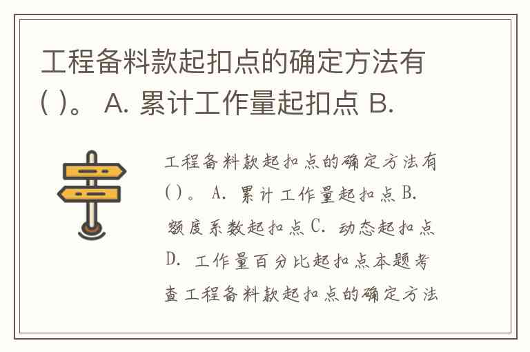 工程备料款起扣点的确定方法有( )。 A. 累计工作量起扣点 B. 额度系数起扣点 C. 动态起扣点 D. 工作量百分比起扣点