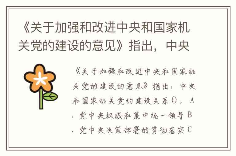 《关于加强和改进中央和国家机关党的建设的意见》指出,中央和国家机关党的建设关系党中央权威和集中统一领导,关系党中央决策部署的贯彻落实,关系最广大人民根本利益的实现,关系社会主义事业的兴衰成败。因此,正确选项是 A、B、C、D。