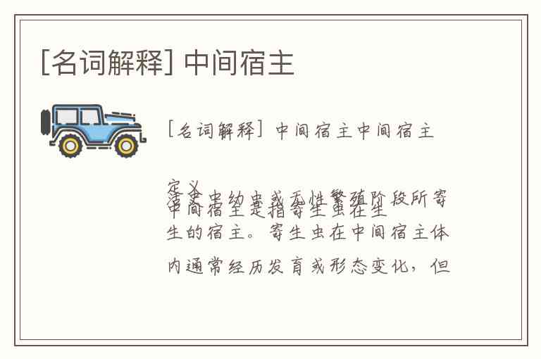 中间宿主是指寄生虫在生活史中幼虫或无性繁殖阶段所寄生的宿主。寄生虫在中间宿主体内通常经历发育或形态变化,但不能发育为成虫或完成有性繁殖。