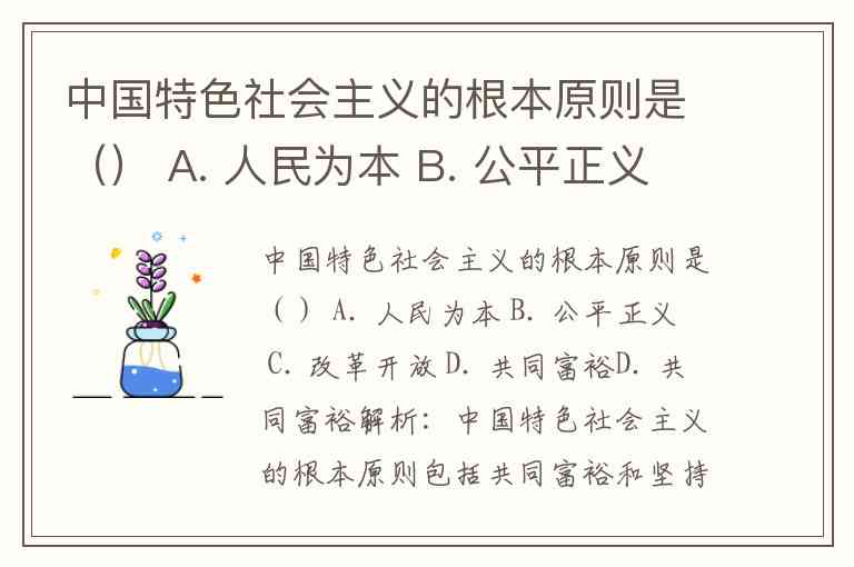 中国特色社会主义的根本原则是() A. 人民为本 B. 公平正义 C. 改革开放 D. 共同富裕