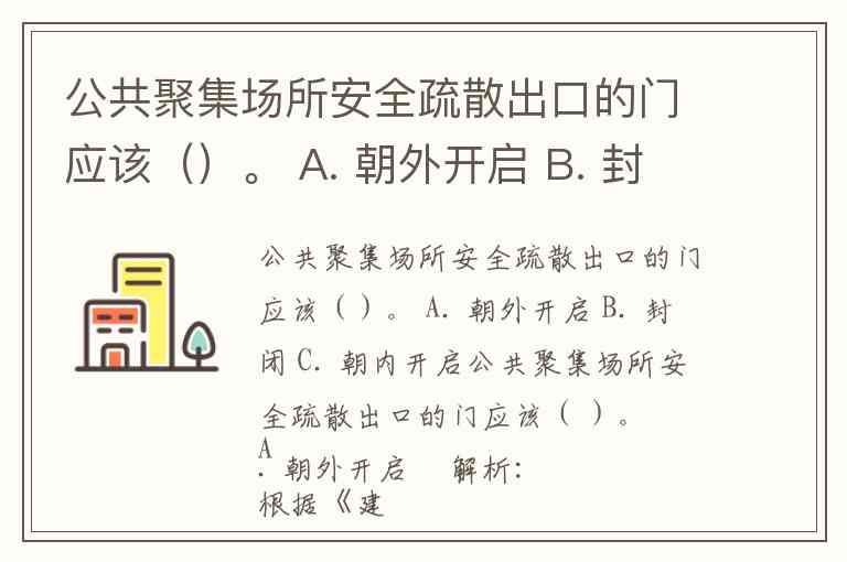 公共聚集场所安全疏散出口的门应该()。 A. 朝外开启 B. 封闭 C. 朝内开启