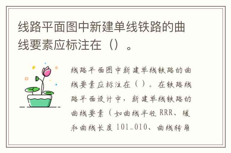 在铁路线路平面设计中,新建单线铁路的曲线要素(如曲线半径 、缓和曲线长度 、曲线转角 等)通常标注在曲线的内侧(即曲线圆心一侧)。