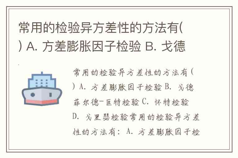常用的检验异方差性的方法有( ) A. 方差膨胀因子检验 B. 戈德菲尔德-匡特检验 C. 怀特检验 D. 戈里瑟检验