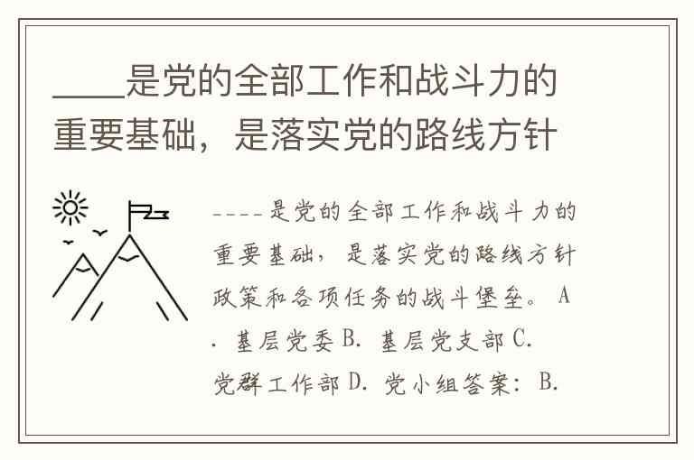 ____是党的全部工作和战斗力的重要基础,是落实党的路线方针政策和各项任务的战斗堡垒。 A. 基层党委 B. 基层党支部 C. 党群工作部 D. 党小组