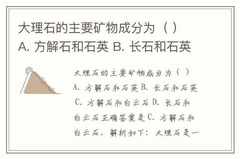大理石的主要矿物成分为( ) A. 方解石和石英 B. 长石和石英 C. 方解石和白云石 D. 长石和白云石