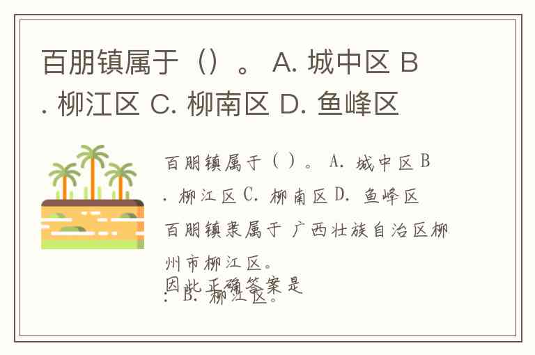 百朋镇属于()。 A. 城中区 B. 柳江区 C. 柳南区 D. 鱼峰区