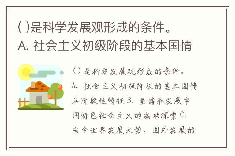 ( )是科学发展观形成的条件。 A. 社会主义初级阶段的基本国情和阶段性特征 B. 坚持和发展中国特色社会主义的成功探索 C. 当今世界发展大势、国外发展的经验教训 D. 冷战结束后国际局势科学判断基础上形成的