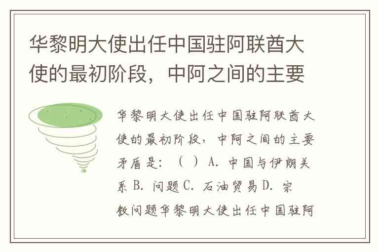 华黎明大使出任中国驻阿联酋大使的最初阶段,中阿之间的主要矛盾是:( ) A. 中国与伊朗关系 B. 问题 C. 石油贸易 D. 宗教问题