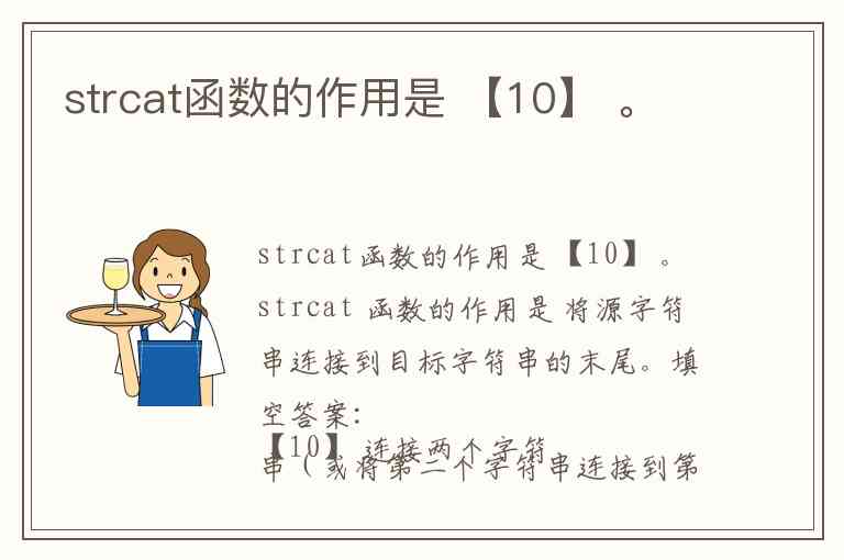 strcat 函数的作用是 将源字符串连接到目标字符串的末尾。