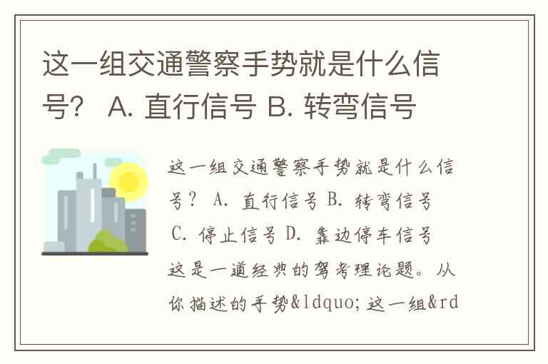 这一组交通警察手势就是什么信号? A. 直行信号 B. 转弯信号 C. 停止信号 D. 靠边停车信号
