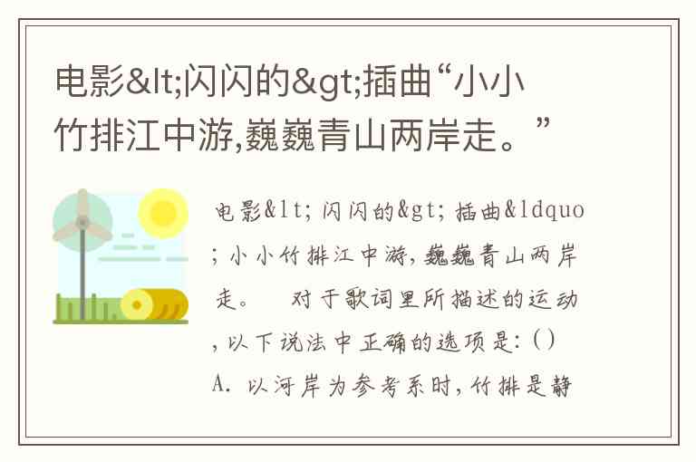 电影<闪闪的>插曲“小小竹排江中游,巍巍青山两岸走。〞对于歌词里所描述的运动,以下说法中正确的选项是:( ) A. 以河岸为参考系时,竹排是静止的 B. 以竹排为参考系时,青山是运动的 C. 以竹排为参考系时,青山是静止的 D. 以竹排为参考系时,坐在竹排上的人是运动的