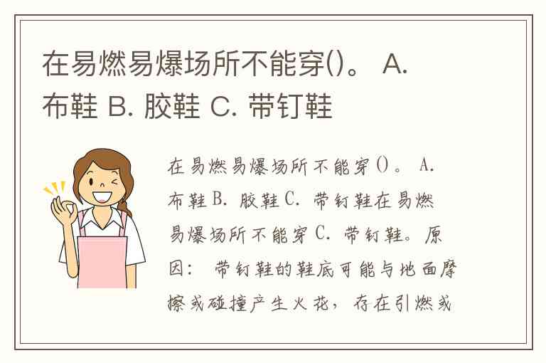 在易燃易爆场所不能穿 C. 带钉鞋。