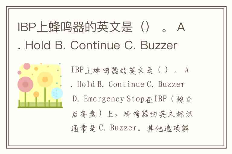 IBP上蜂鸣器的英文是() 。 A. Hold B. Continue C. Buzzer D. Emergency Stop