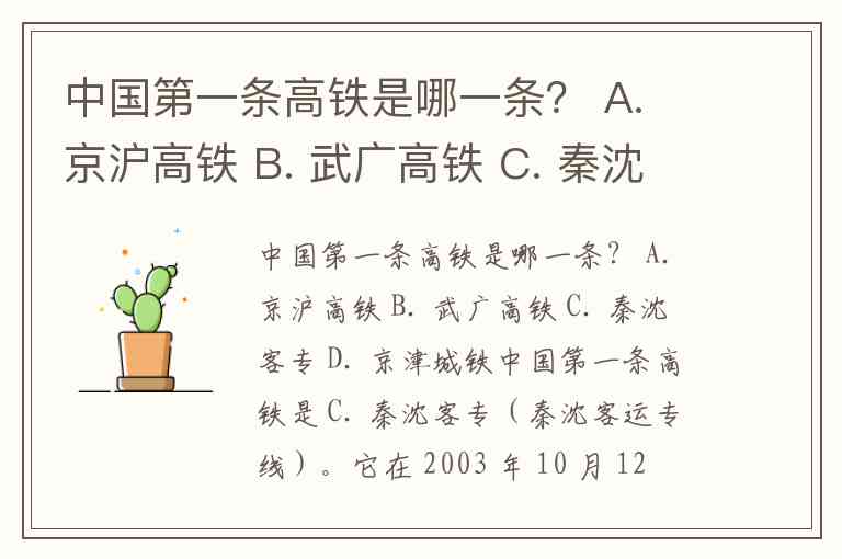中国第一条高铁是 C. 秦沈客专(秦沈客运专线)。
