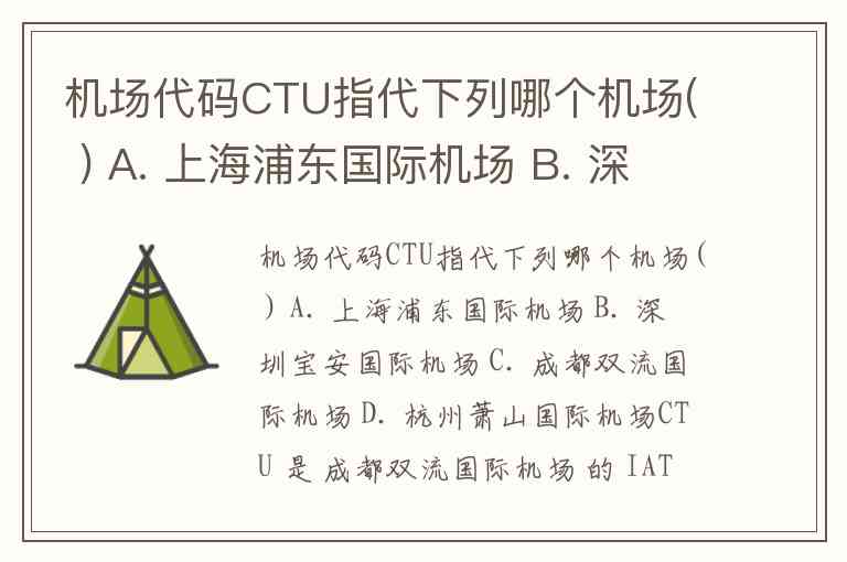 机场代码CTU指代下列哪个机场( ) A. 上海浦东国际机场 B. 深圳宝安国际机场 C. 成都双流国际机场 D. 杭州萧山国际机场