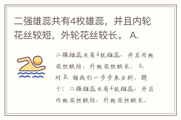 题干:二强雄蕊共有4枚雄蕊,并且内轮花丝较短,外轮花丝较长。