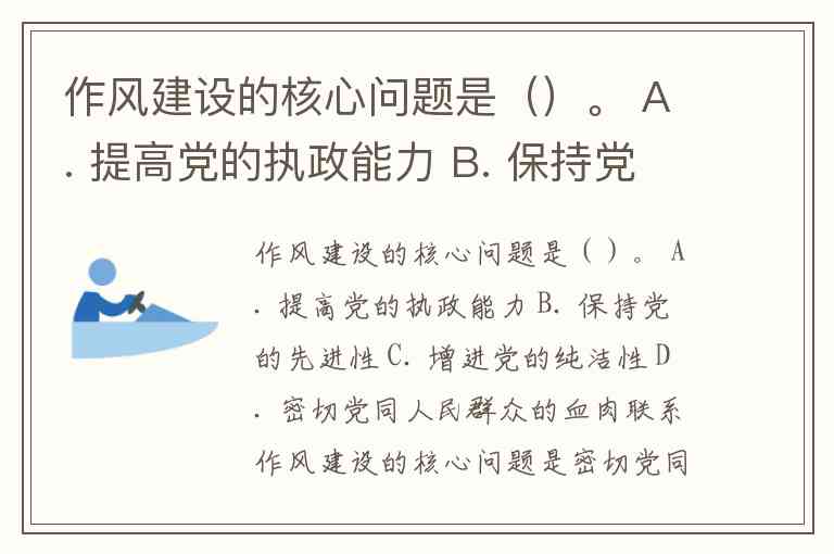 作风建设的核心问题是()。 A. 提高党的执政能力 B. 保持党的先进性 C. 增进党的纯洁性 D. 密切党同人民群众的血肉联系