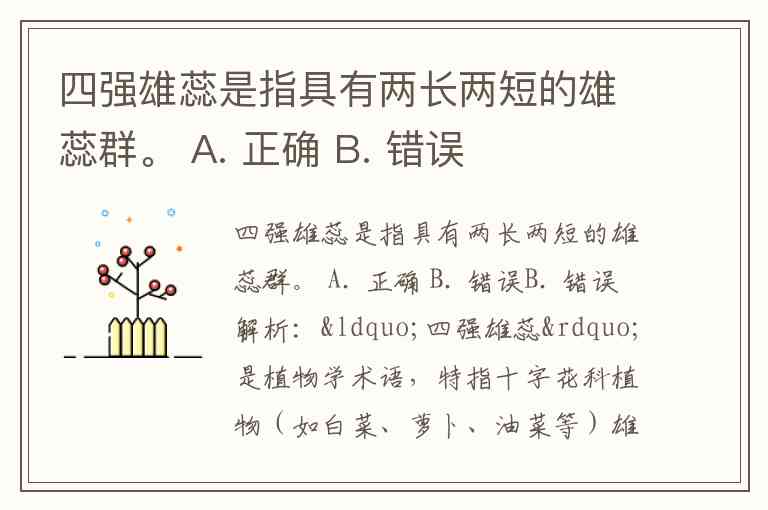 题干说“具有两长两短的雄蕊群”并且称之为“四强雄蕊”,这种描述不准确,因为: