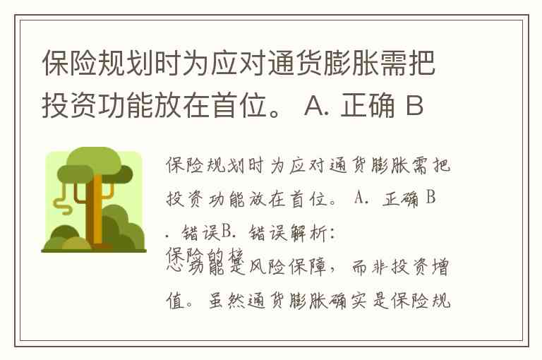 保险规划时为应对通货膨胀需把投资功能放在首位。 A. 正确 B. 错误
