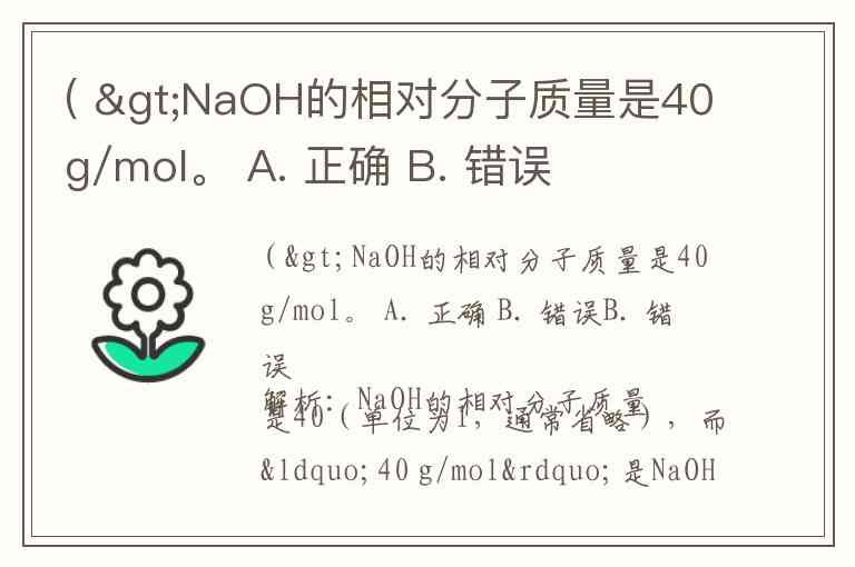 ( >NaOH的相对分子质量是40g/mol。 A. 正确 B. 错误