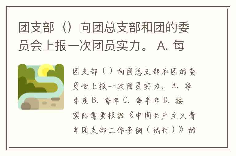 团支部()向团总支部和团的委员会上报一次团员实力。 A. 每季度 B. 每年 C. 每半年 D. 按实际需要