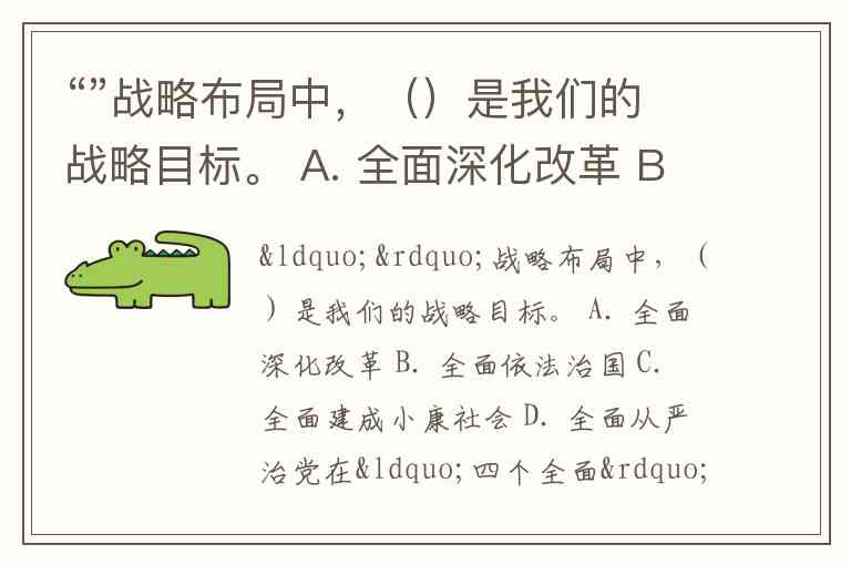 “”战略布局中,()是我们的战略目标。 A. 全面深化改革 B. 全面依法治国 C. 全面建成小康社会 D. 全面从严治党