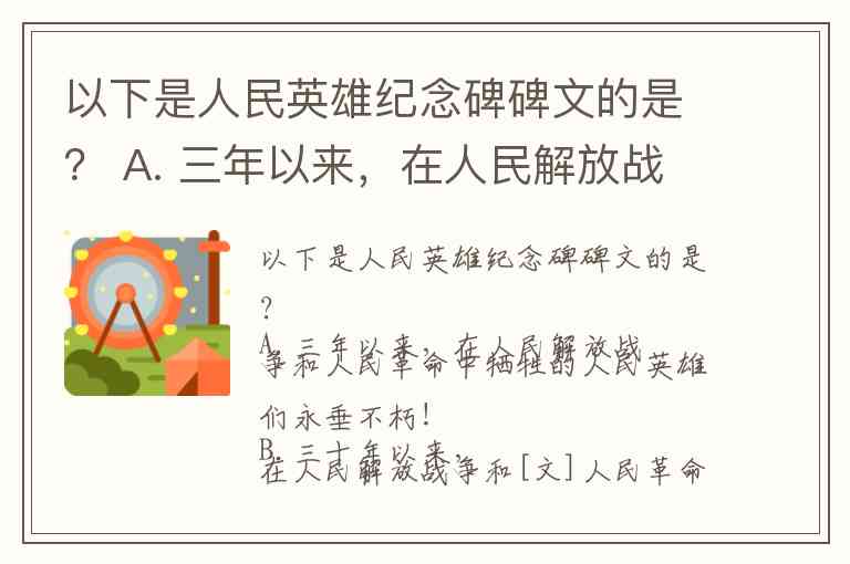 A. 三年以来,在人民解放战争和人民革命中牺牲的人民英雄们永垂不朽!B. 三十年以来,在人民解放战争和人民革命中牺牲的人民英雄们永垂不朽!C. 由此上溯到一千八百四十年,从那时起,为了反对内外敌人,争取民族独立和人民自由幸福,在历次斗争中牺牲的人民英雄们永垂不朽!