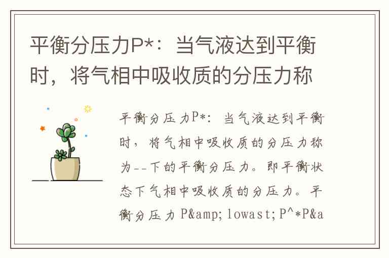 平衡分压力P*:当气液达到平衡时,将气相中吸收质的分压力称为__下的平衡分压力。即平衡状态下气相中吸收质的分压力。