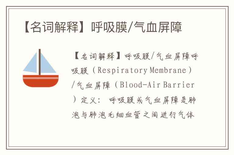 定义: 呼吸膜或气血屏障是肺泡与肺泡毛细血管之间进行气体交换所必须通过的结构。它是氧气从肺泡腔扩散进入毛细血管血液,以及二氧化碳从血液扩散进入肺泡腔的薄层屏障。