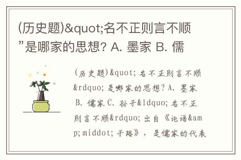 (历史题)"名不正则言不顺”是哪家的思想? A. 墨家 B. 儒家 C. 孙子