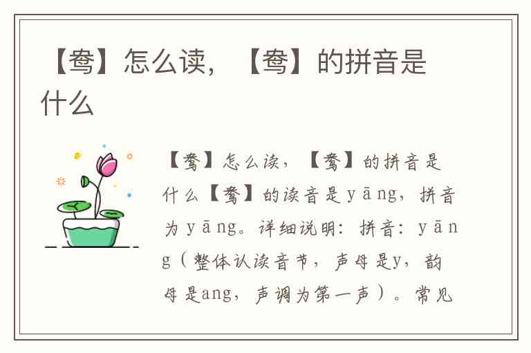 注意:“鸳”读yuān(第一声),“鸯”读yāng(第一声),两者组合时“鸯”读轻声(yuān yang)的情况在口语中常见,但标准读音仍为yāng。