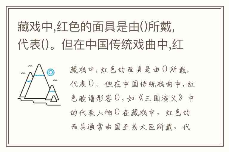 藏戏中,红色的面具是由()所戴,代表()。但在中国传统戏曲中,红色脸谱形容(),如《三国演义》中的代表人物()