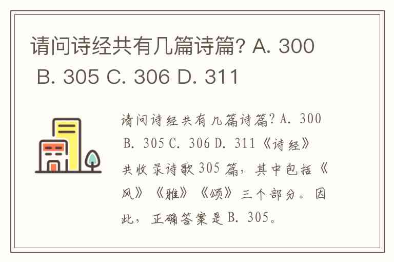 请问诗经共有几篇诗篇? A. 300 B. 305 C. 306 D. 311