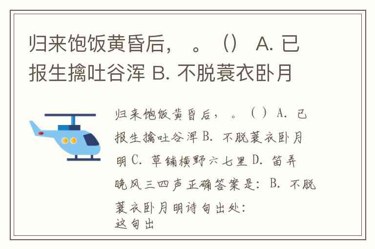 归来饱饭黄昏后, 。() A. 已报生擒吐谷浑 B. 不脱蓑衣卧月明 C. 草铺横野六七里 D. 笛弄晚风三四声
