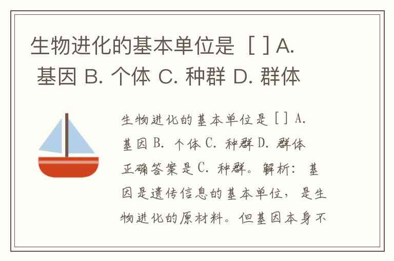 生物进化的基本单位是 [ ] A. 基因 B. 个体 C. 种群 D. 群体