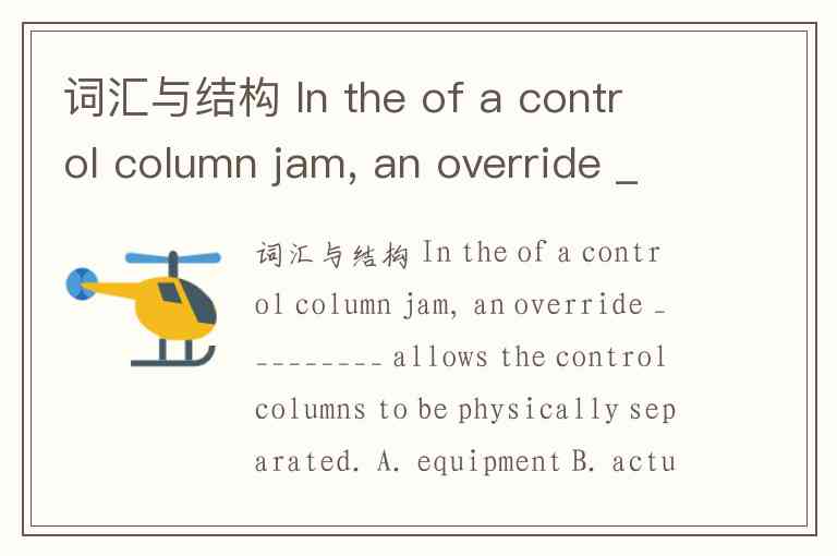 词汇与结构 In the of a control column jam, an override _________ allows the control columns to be physically separated. A. equipment B. actuator C. mechanism D. device