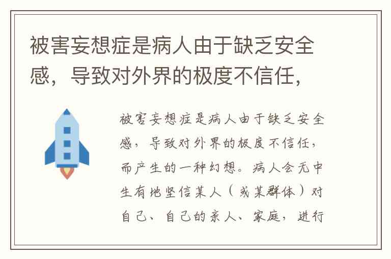 无中生有地坚信某人/某群体对自己或家人有监视、攻击、迫害等行为。