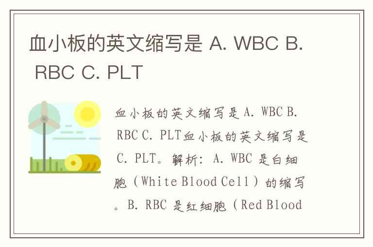 血小板的英文缩写是 A. WBC B. RBC C. PLT