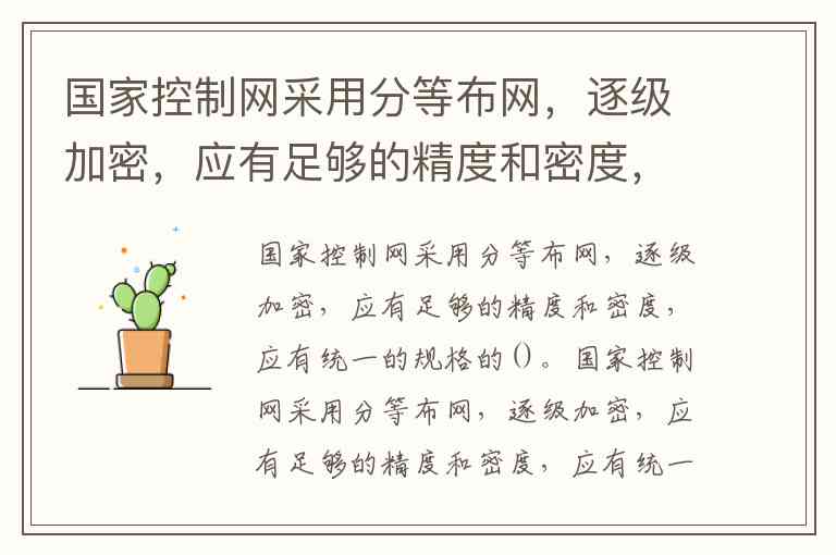 国家控制网采用分等布网,逐级加密,应有足够的精度和密度,应有统一的规格的 (坐标系统和高程基准)。