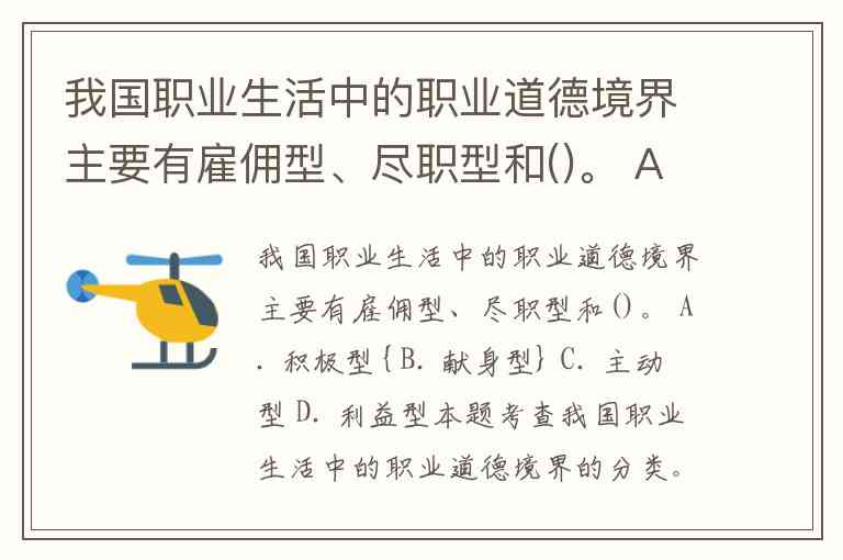 我国职业生活中的职业道德境界主要有雇佣型、尽职型和()。 A. 积极型{ B. 献身型} C. 主动型 D. 利益型